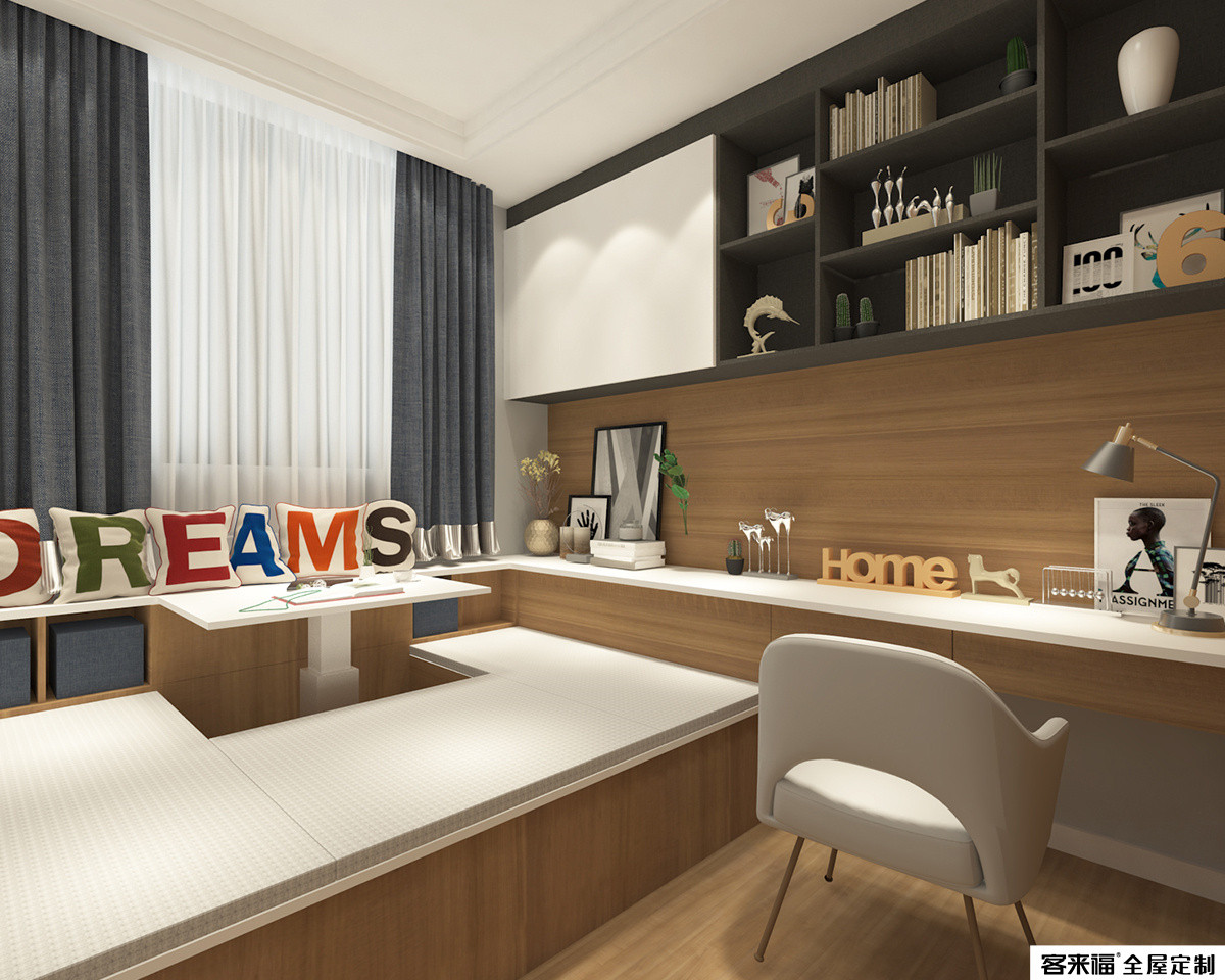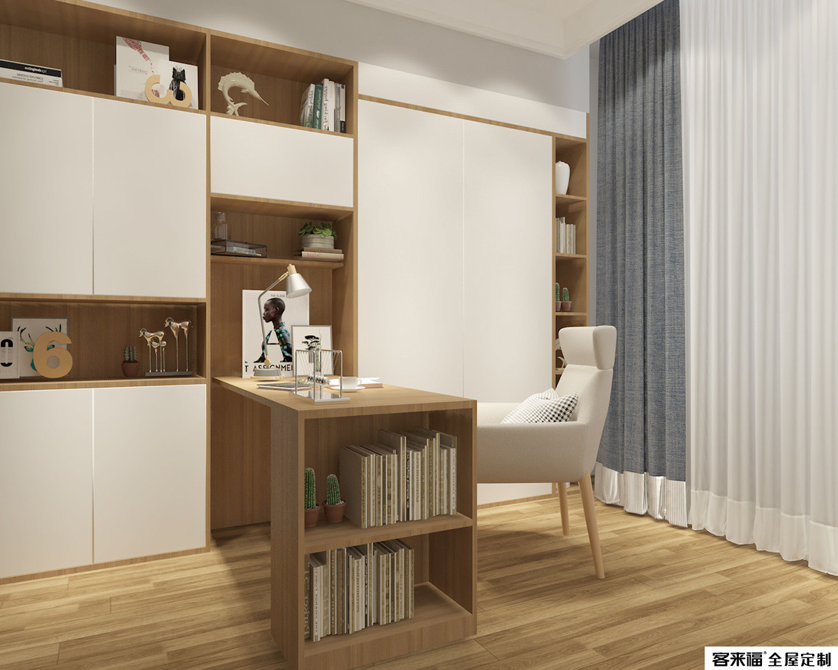 The hidden desk can transform the study into a bedroom, saving extra space and making small spaces full of vitality. Minimalism makes you want to stop!