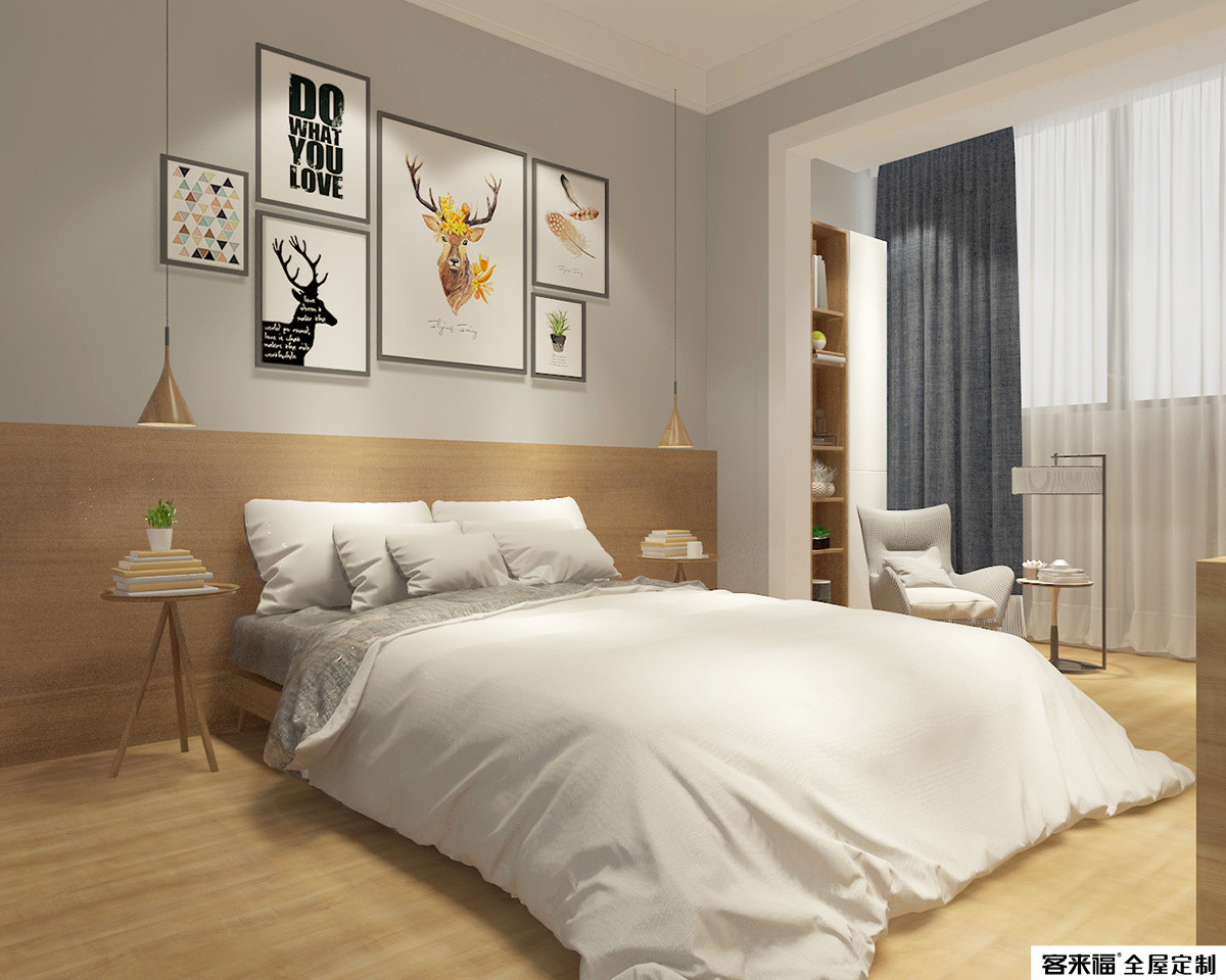 Simple and elegant, the original wood color is matched with simple and elegant white, which fully demonstrates the Nordic architectural style, and creates a warm home style with warm and warm lighting.