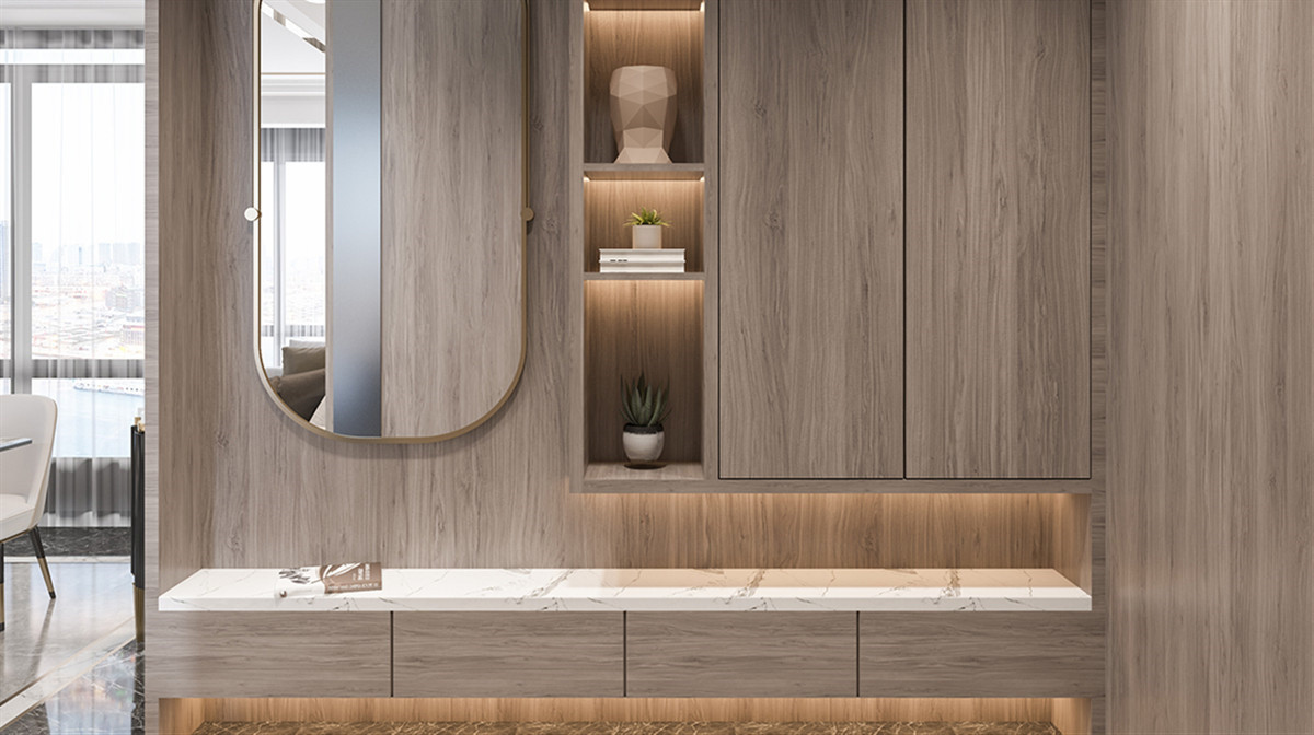 Simple color matching makes the Jinyu Mantang series. The unique style brings the concept of light luxury to the extreme. The wood-colored board finishes abandon complex ideas, and are as simple as they are true to the world. The design of the room also looks more seductive because of this concept.
