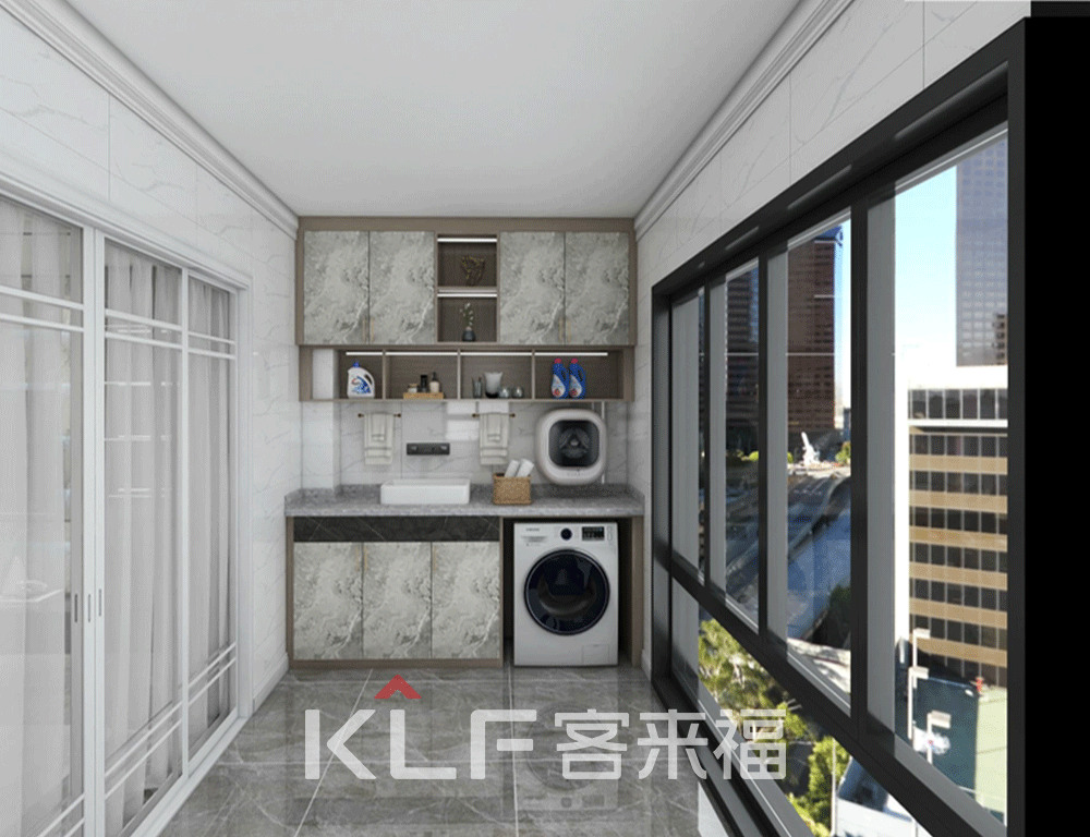 米兰·(milan)摒弃了阳台空间的杂乱风格,左右两侧各打造了一个阳台柜,将洗衣机等物品与阳台柜组合,节省了空间,让阳台看起来更加干净整洁,洗衣晒衣也更为方便,营造舒适养眼的色调和平和舒适的视觉氛围。