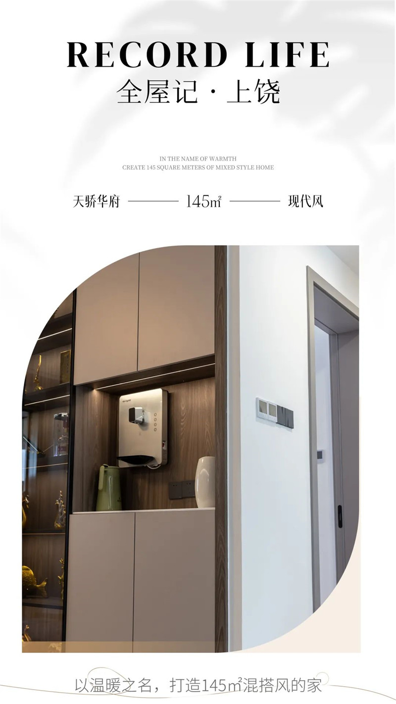 这套来自江西上饶·天骄华府的现代风案例就通过在现代舒适生活感的基础上加入色彩与材质上的多元素混搭,形成这样一个颇具个性色彩的家。