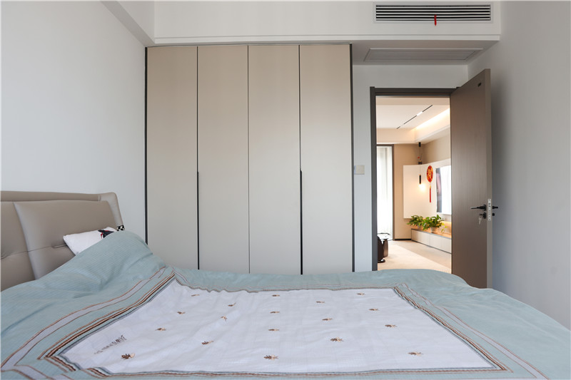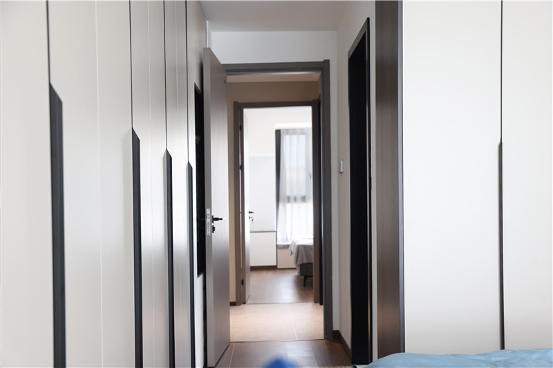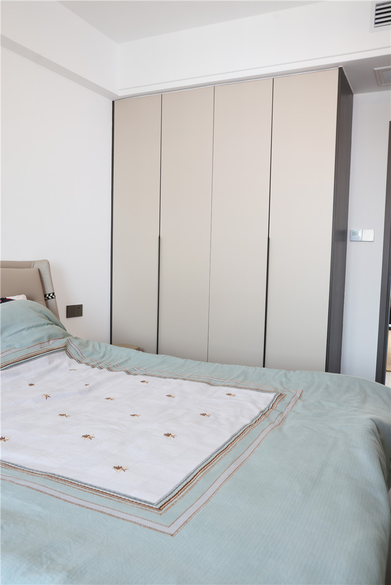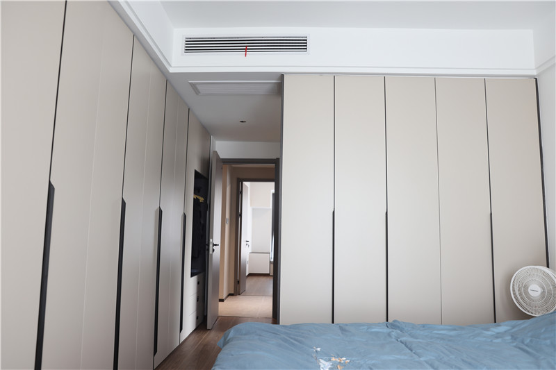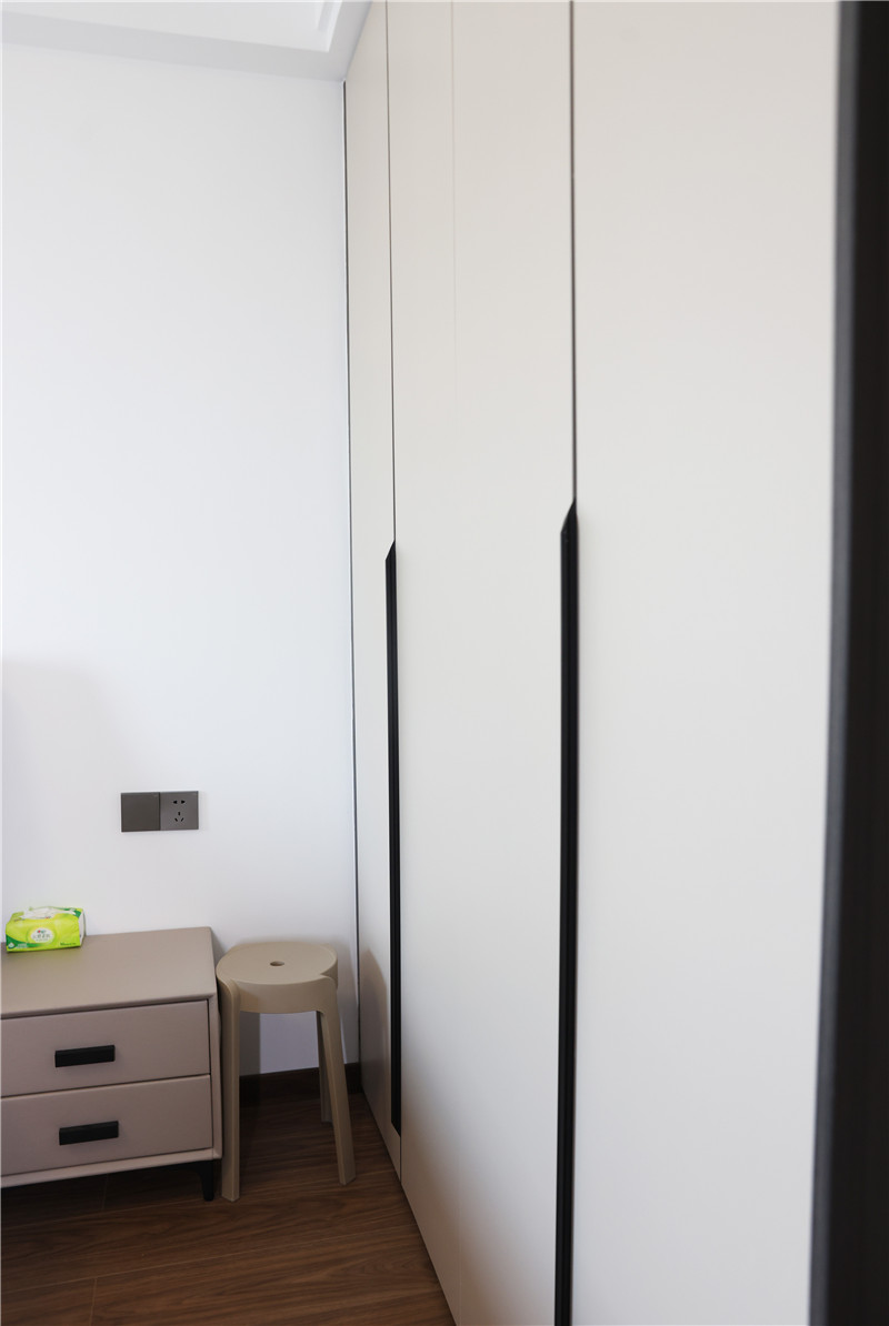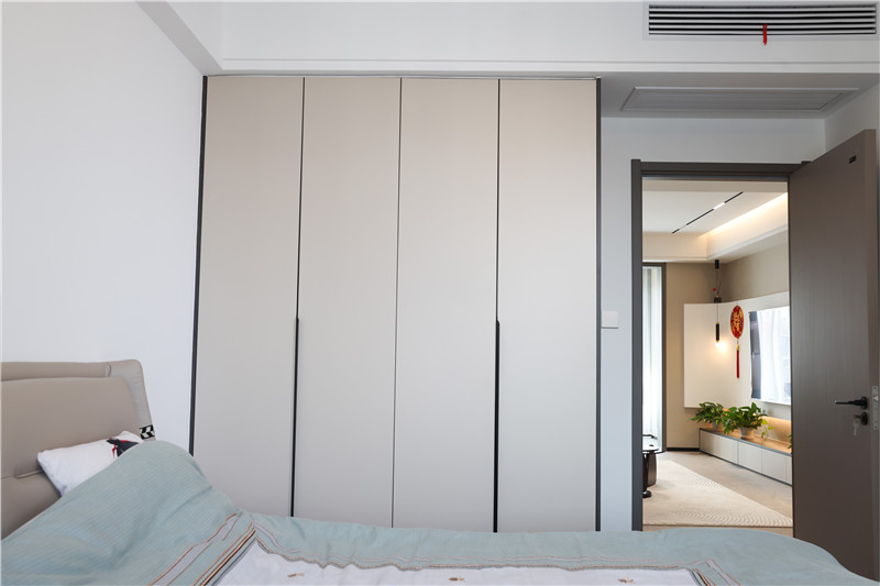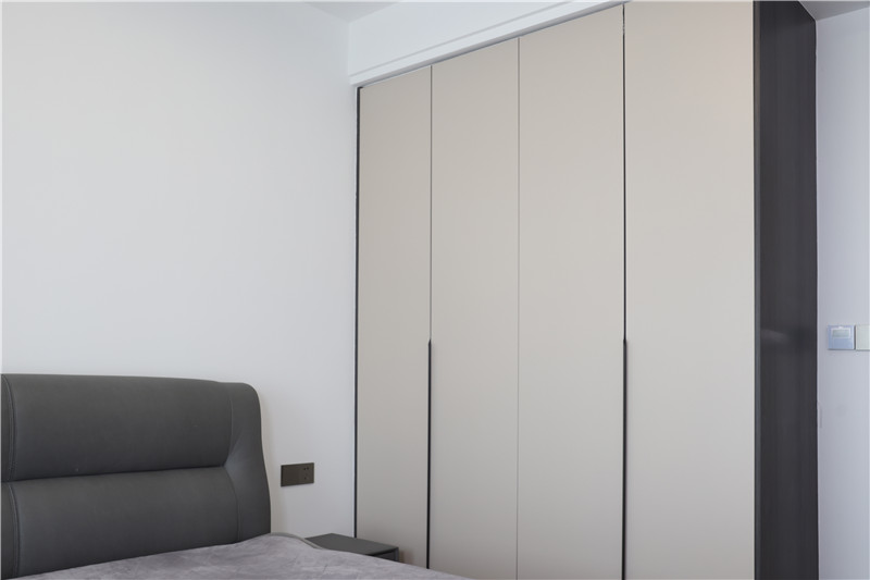 主卧与次卧根据不同人需求与生活习惯,都选用了米兰·(milan)科技木纹+茶白,打造不同造型的柜体。衣柜拥有强大收纳能力同时,不影响空间颜值与人的活动范围。