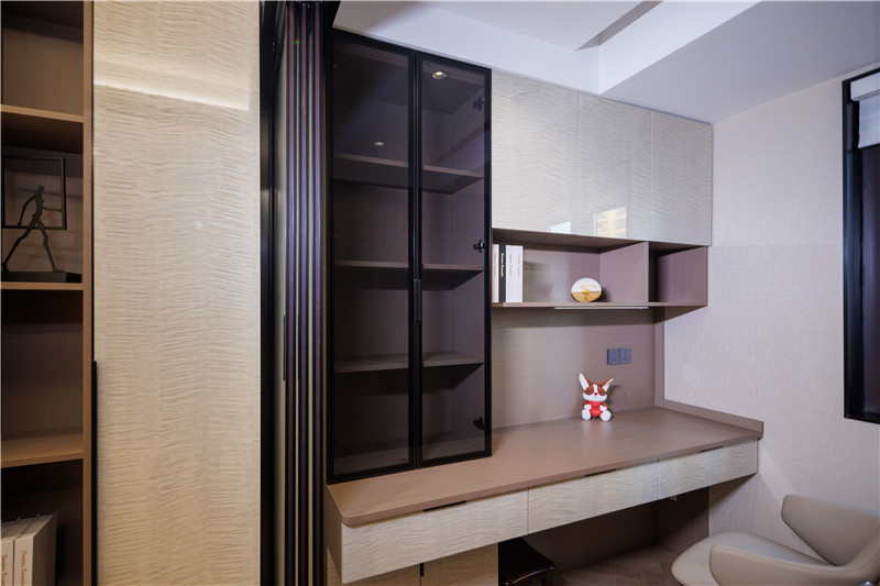 书柜、玻璃柜、抽屉拉手同色,米兰·(milan)黑好搭且有性价比;书桌定制高度、灯光巧妙搭配,让学习者舒适沉浸;小书房整体协调组合,空间利用率高。
