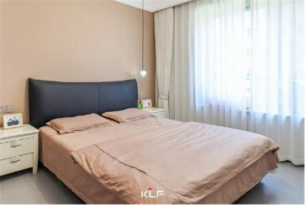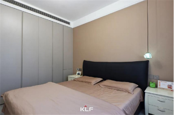 主卧一侧到顶式衣柜,延展视觉,搭配铣槽拉手,让衣柜拥有小亮点;内部合理分区,让小空间的收纳力不容小觑;靠床可做小型展览柜,个性化装饰。
