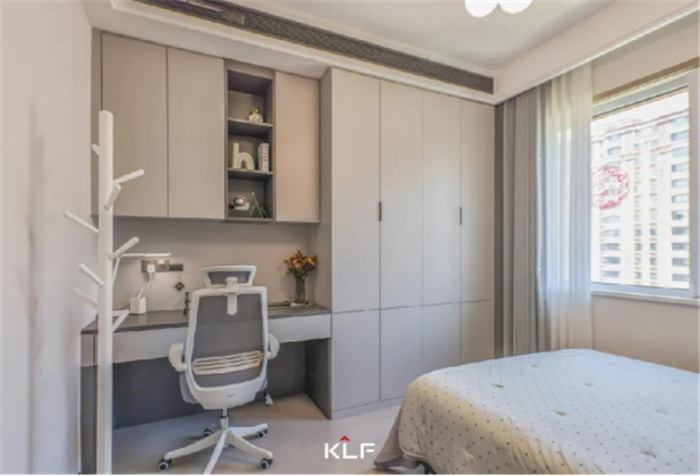 衣柜书桌一体化设计,将现代生活的高效理念完美融入其中。在卧室的一角阅读思考,重新审视生活的不同切面所带来的随机体验,是触及内心的重要方式。