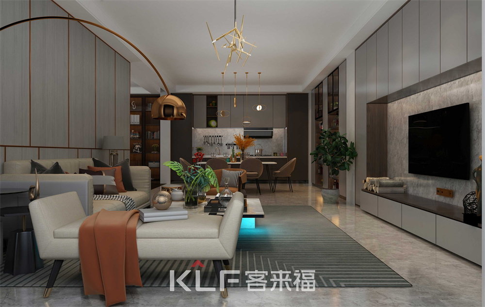 满载光泽的金属装饰、经典惹眼的双色墙,造型简约的时尚家具.....大量元素融合于客厅,营造出自由与浪漫,低调与奢华的气质。