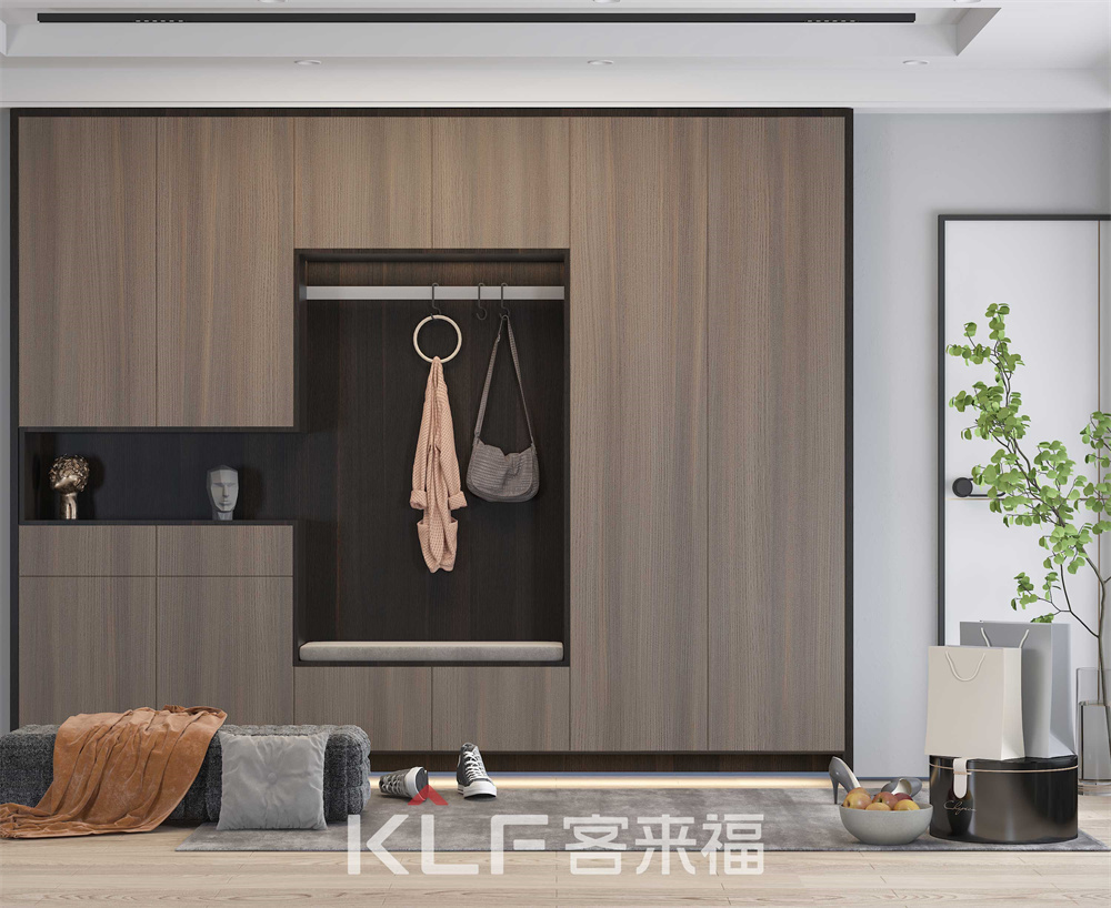 满墙柜满足入户处的繁杂收纳需求,忙碌一天后,便可在入户小憩稍刻,从回家开始就体验家的温馨与满足。