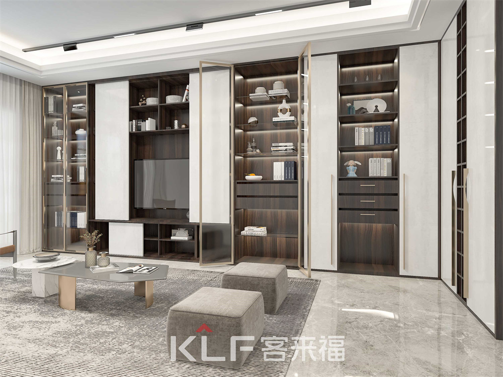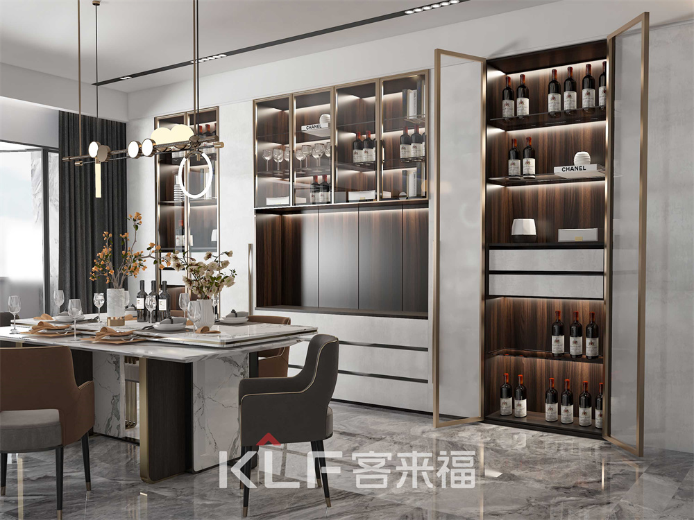 有一种生活方式叫轻奢,低负担高品质,进口萨里奇酒架的简约造型,红酒横向的存放方式不但可以让香气持久,同时让空间多了一道靓丽的风景,电视柜和酒柜都是采用平开门和平移门的双重门板设计方式,让空间展示更加多元化。